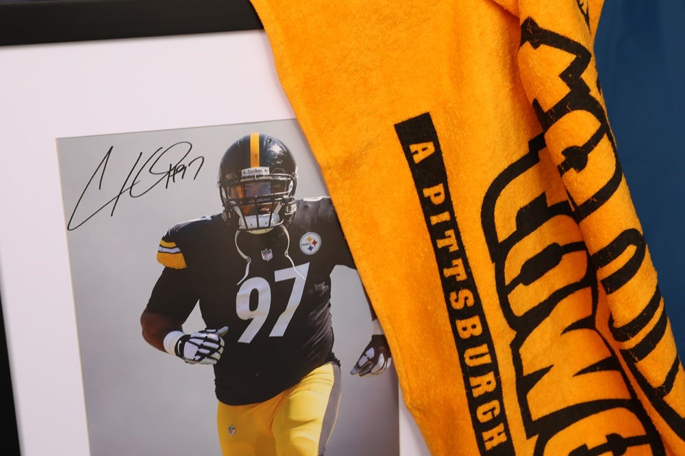 Snag this signed picture of first round draft pick Cameron Heyward. A great collectible for Steelers fans. Also included is a Terrible Towel!